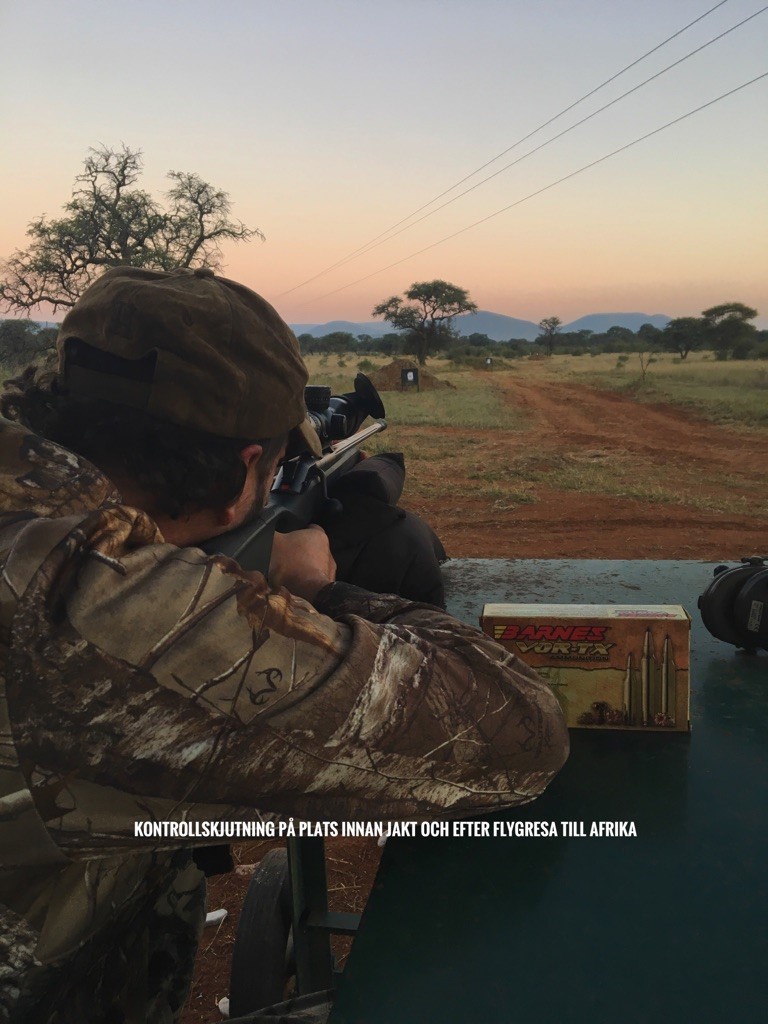 Jag brukar alltid grovjustera med övningsammunition och sen finjustera sista skotten med jaktammunitionen. Ibland skiljer det en del mellan jakt-och övningsammunitionen, men det är sällan så pass stor skillnad. Jag brukar även i början skjuta två skott i taget för att minska på min egna felmarginal.