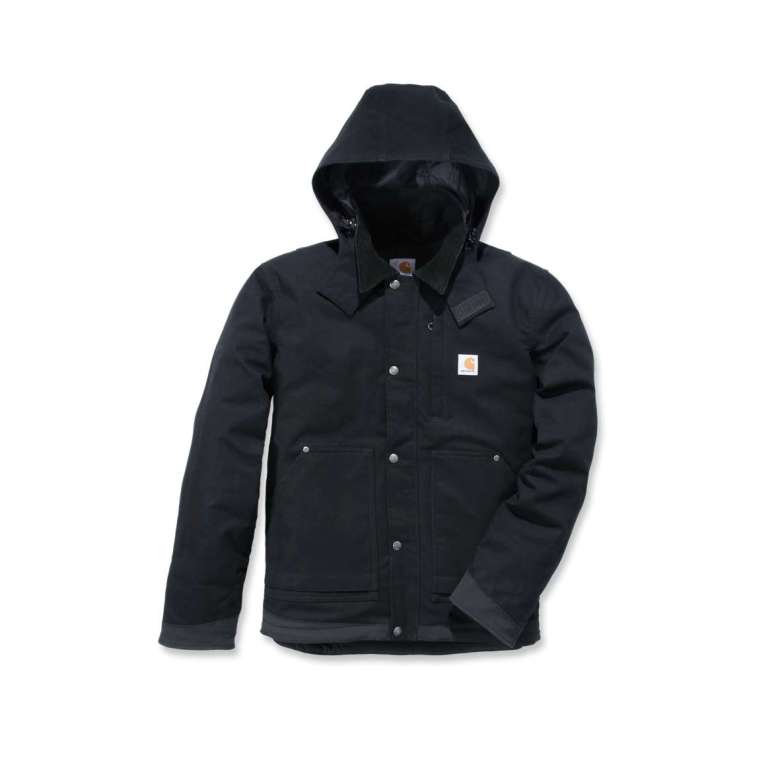 Carhartt, Jacka i svart med stretch bomull. Är en skön vinter/höst jacka med 73% bomull, 24& Cordura, nylon och 3% elastiska regnskyddet som är carhartts slitstarka vattenavisande nylonmaterial. Jackan är perfekt till arbete utomhus då den är vattenavvisande och vindtät.