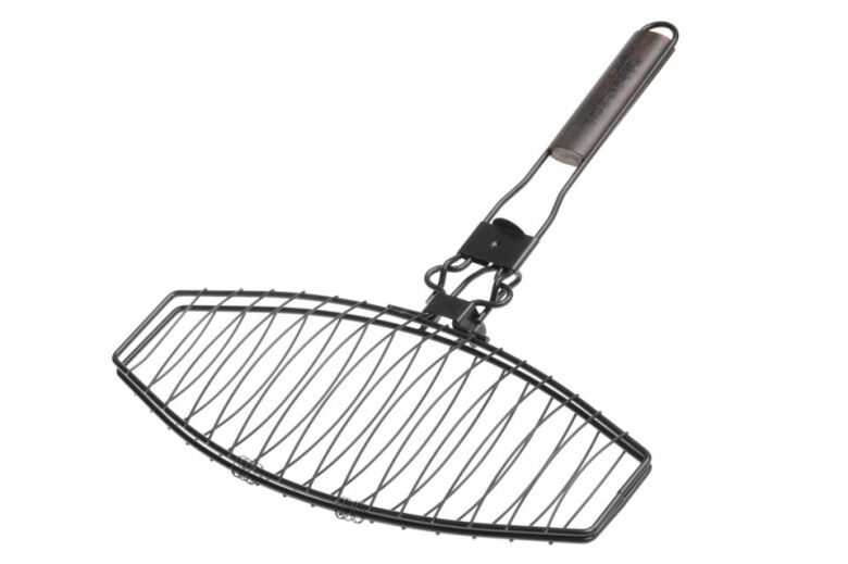 Fiskhalster i stål med non-stick beläggning och löstagbart skaft, sidofäste. Handtag i trä. Storlek 41 x 24 cm.