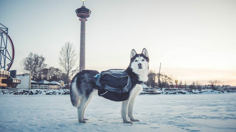 Amundsen pack är grå och svart med reflex. Klövjen finns i storlek XXS – XXL.