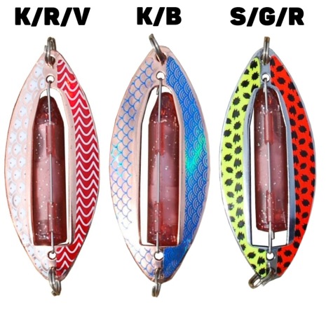 Själva blinken är en dubbelblink med röd blink som aktiveras när betet kommer i kontakt med vatten. Utbytbar blink.