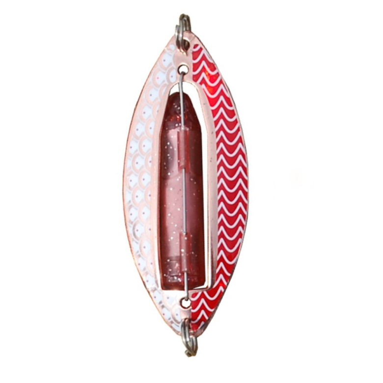 Wiggler Muskus 81mm är ett blinkblänke eller en också kallad blinkpirk passar utmärkt i fjällen eller inplanterade sjöar och insjöar. Wiggler Muskus 81mm levereras med 10 cm tafs och krok stl 12. Agna gärna med mask, maggot eller Attraqua.
