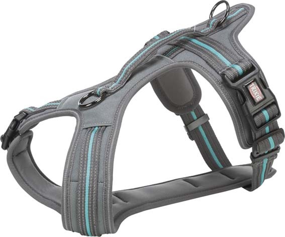 • med extra ring för att fästa koppel i bröst- och halsparti