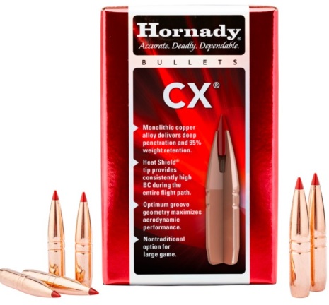 Hornady CX™ har en blyfri konstruktion och är utvecklad för en effektiv chockverkan och djupgående expansion. Kulan håller samman och svampar konsekvent upp i såväl höga som låga hastigheter. CX™ är efterföljaren på Hornady GMX som i många år varit en av marknadens mest populära och pålitliga kopparkula.