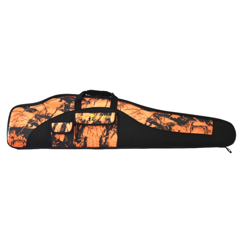 Vapenfodral Orange Camo har ett handtag som kan sättas ihop med kardborre och en bekväm Axelrem. 2st fickor( 22cmx17cm och 13cmx12cm) med kardborrelåsning.